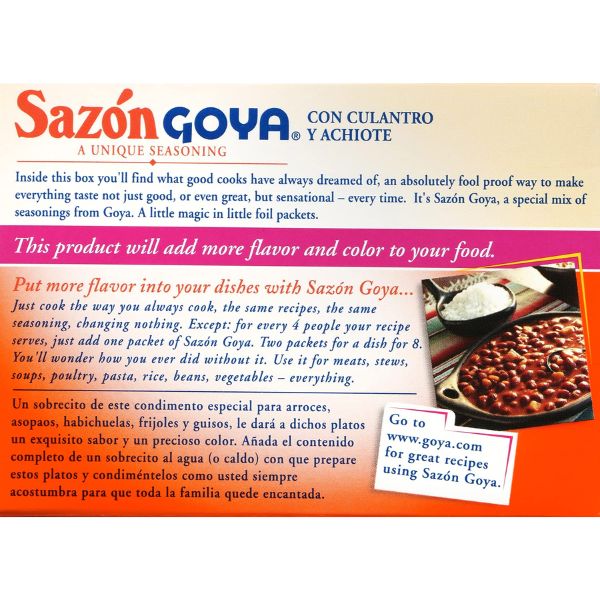 "Goya Sazón is the perfect seasoning for all types of dishes. I use it in everything, and the flavor is always fantastic. The coriander and annatto blend is wonderful. Great purchase experience with Juniper Berry Wholesaler!" -
