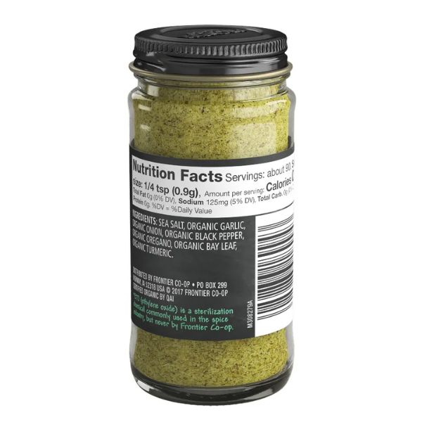 Frontier Co-op® Organic Adobo Seasoning is made from carefully selected, organic ingredients. Each bottle contains a harmonious blend of organic garlic, onion, black pepper, oregano, and bay leaf. The inclusion of turmeric enhances the flavor, giving the seasoning its distinct depth. All ingredients are non-irradiated and free from artificial additives, ensuring you get the purest seasoning possible.