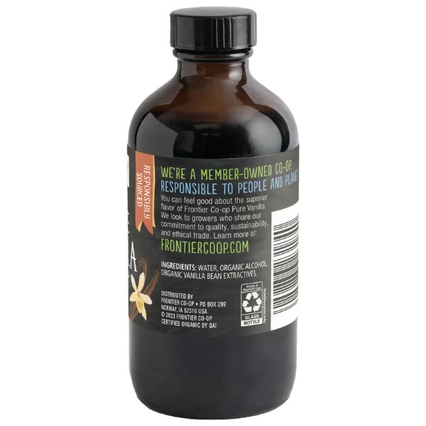 Organic vanilla extract offers a pure and clean flavor profile, free from artificial ingredients and synthetic additives. Choosing organic is not only better for your health, but it also supports sustainable farming practices that protect the environment and ensure fair labor practices. Frontier Co-op® Pure Vanilla Extract is a perfect example of a product that’s both environmentally responsible and full of flavor.